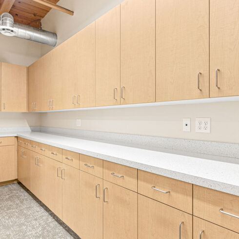 We specialize in tenant improvement, reception desks, custom cabinets, medical and dental offices, shelving, and much more!